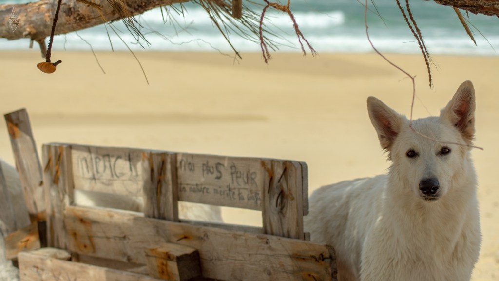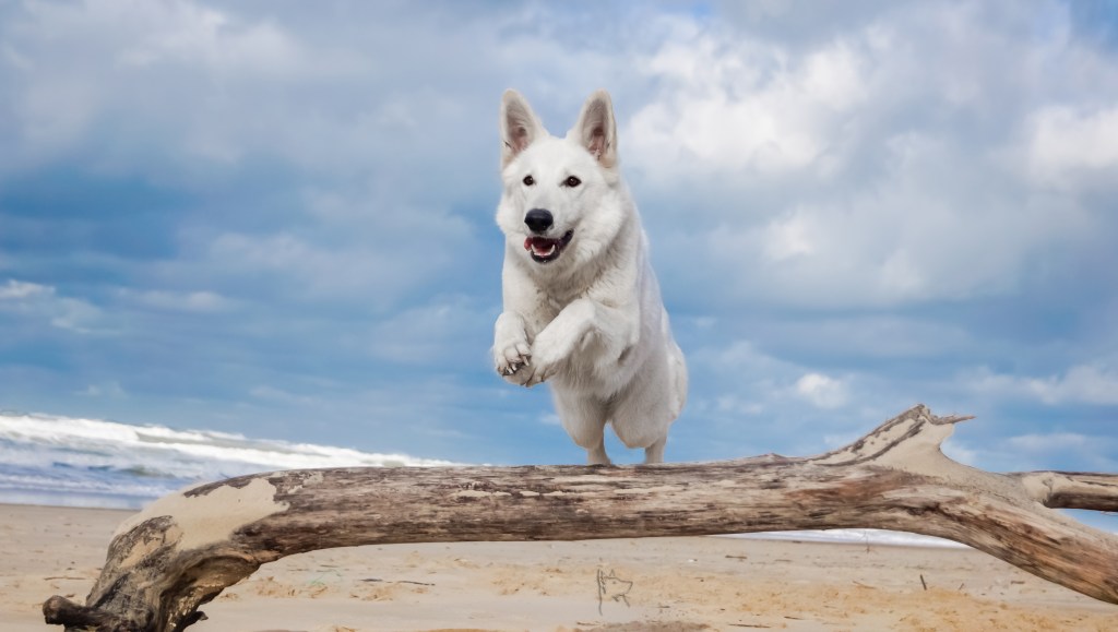 Delta a une très forte ossature, une musculature saillante, un poil blanc long et une belle pigmentation au niveau des yeux.