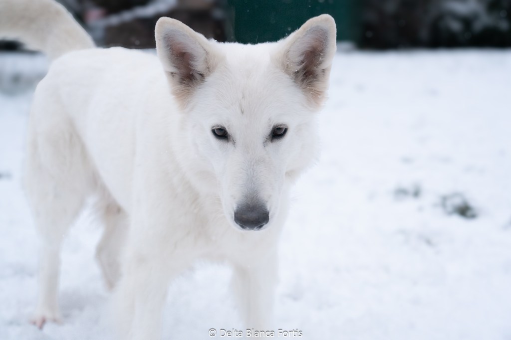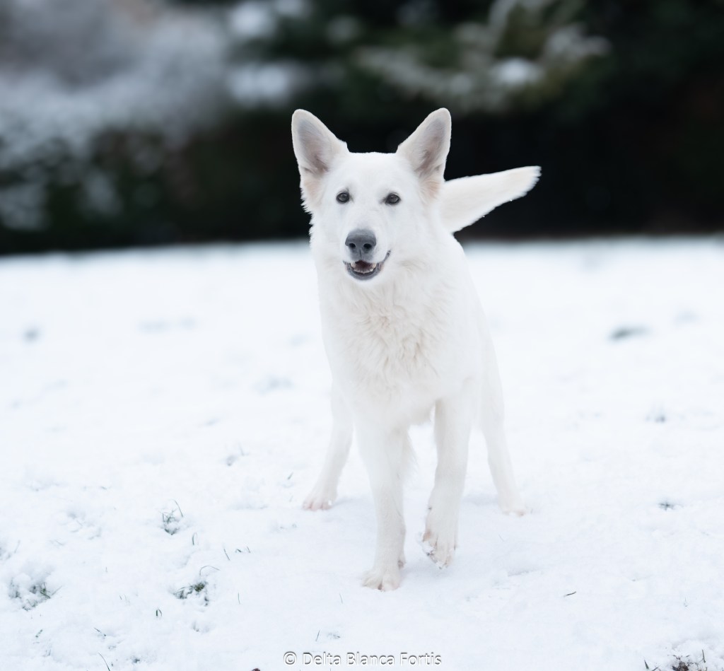 Pretty Little Angel dite ‘Delta’ est notre première chienne de race Berger Blanc Suisse, elle est de premier abord un peu méfiante (bonne gardienne) , puis se révèle fougueuse, intelligente, bienveillante, et malicieuse. Delta est notre pilier , le genre de chien avec lequel un seul regard suffit pour se comprendre, elle s’implique à 1000% dans toute activité proposée (mais surtout les sportives) .